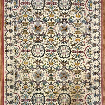 Indisk håndvævet tæppe af silke på bomuld, ca. 154 × 94 cm, flerfarvet, i meget god stand. Klik på den blå "gå til varen" knap, for at købe eller byde på denne vare. Den samlede pris vil blive vist inden du afgiver dit bud.
