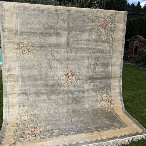 Origin : Unik håndknotet kinesisk tæppe med smukke farver.