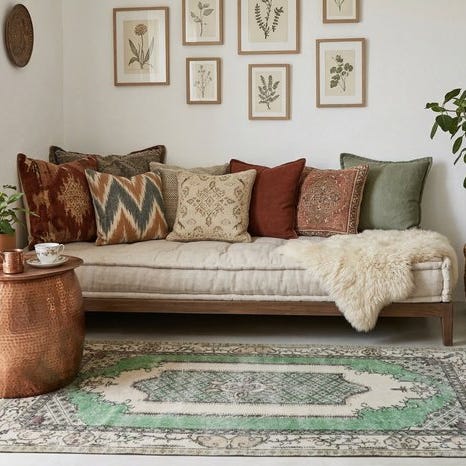 Grøn vintage - Tæppe - 205 cm - 110 cm - √ Håndlavet √ Certifikat