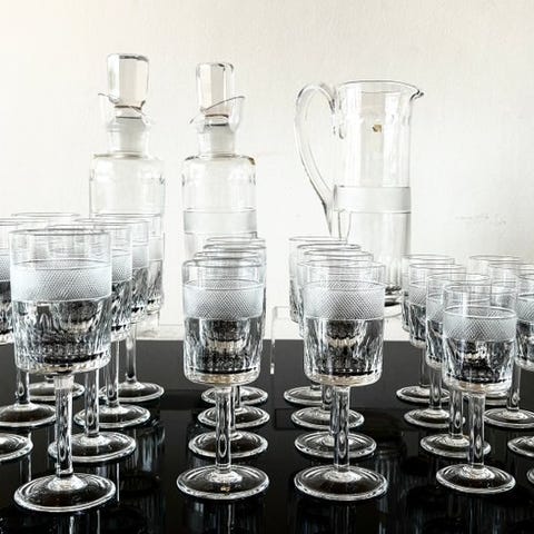 En enestående og komplet vintage krystalservisesæt fra den prestigefyldte belgiske producent Val Saint Lambert, internationalt anerkendt for at producere noget af Europas fineste håndlavede blykrystal.