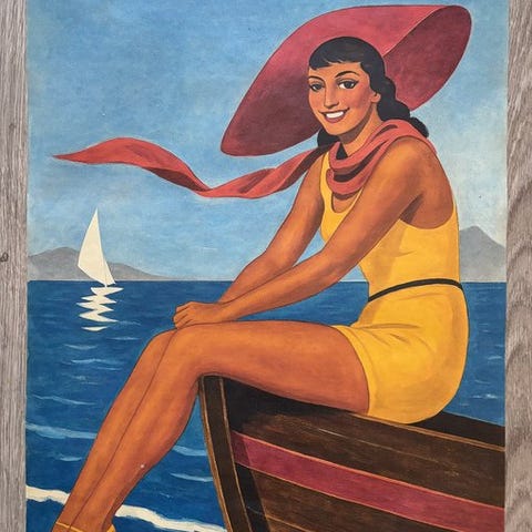 Denne Juan-les-Pins-plakat viser et billede af den berømte plakatkunstner Roger Broders fra 1931, der hylder solen på den Franske Riviera. En kvinde synes at være betaget af en strålende sol. Broders leger mesterligt med nuancer af gult og hvidt for at formidle strålernes kraft. I denne version af billedet står kystresortet Antibes, Juan-les-Pins, i centrum. Denne chic ferieby oplevede sin storhedstid i 1920’erne med sine store hoteller.
