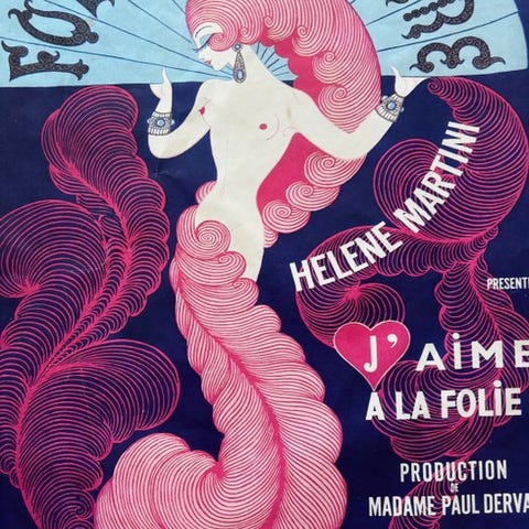 Komposition med stor scenisk effekt, med livlige og kontrastfyldte farver (rød, blå, gul og grøn) og formenes flydende bevægelse, elementer der kendetegner den franske reklamekunst mellem slutningen af 1800-tallet og begyndelsen af 1900-tallet. En fremstilling, der perfekt indkarnerer Belle Époque-ånden og