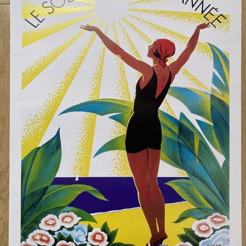 Splendido reklameplakat ”Aix-les-Bains” signeret af Leonetto Cappiello og dateret 1921, en af de største mestre inden for international reklamestand, berømt for sine elegante sammensætninger og stærk visuelt slagkraft.