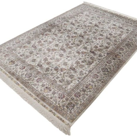 Oprindelse: Indien; Model: Original Kashmir Seide; Håndvævede tæppe med silke på bomuld; Mål: 190 × 122 cm; Tykkelse ca. 7 mm; Vægt ca. 15 kg; Farve beige; Produktionsperiode: det 21. århundrede; Tilstand: restaurationskrævende skader. Klik på den blå "gå til varen" knap, for at købe eller byde på denne vare. Den samlede pris vil blive vist inden du afgiver dit bud.