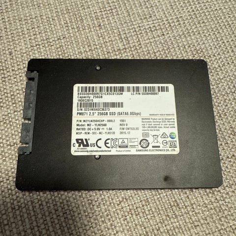 Samsung 840 Pro SSD med 256GB lagerplads. Standard 2,5" SATA-drev, klar til montering i pc eller laptop.