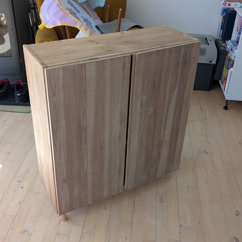 IKEA skab valnøddetræsfiner, 108x40x90. Pris for ny er 3200. Der er en lille ridse på siden af skabet. Jeg kan skille skabet af inden afhentning mod forudbetaling.