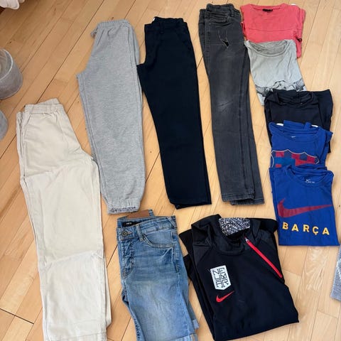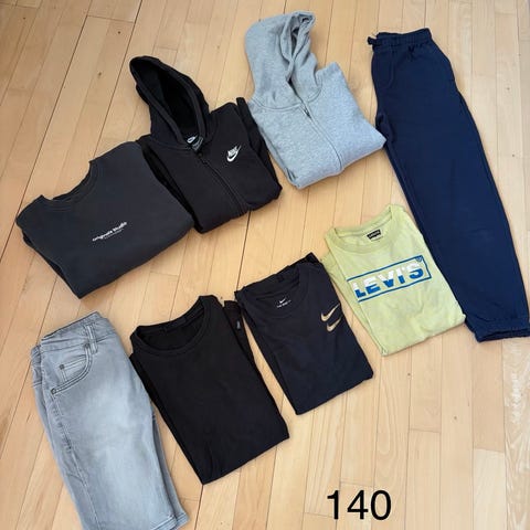 Nike shorts i str 134 til dreng samt flere andre bluser og shorts i forskellige farver. Der er både langærmede trøjer og shorts med elastik og snøre i taljen.