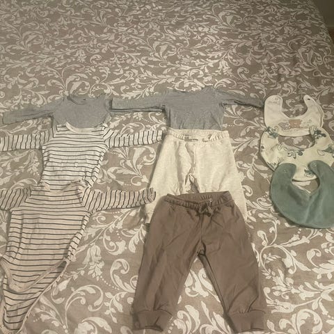 Fine rib bodyer og bukser fra Name it i str 92 til dreng, i flere farver og med knapper foran. Nogle af bukserne er stribede, og bodyerne har lange ærmer. 7 bodyer og 3 par bukser/leggings