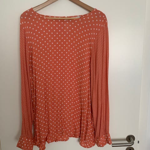 Multifarvet KAFFE top i str 46 med bredde stropper og rynket stof hele vejen rundt. Let viskosekvalitet med mønster i beige, sort og brune nuancer.