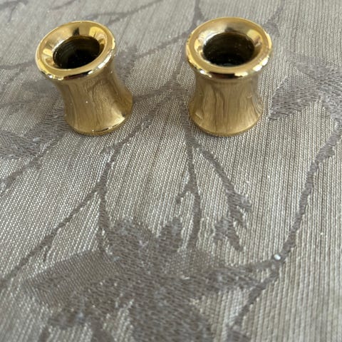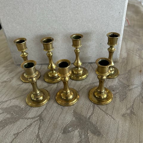 8 stk Kertelysestager - ca 5 cm i diameter- med brugsspor - ridser - mærker - patina. Stempel Cohr - og Chr. Jensen. Kan sendes for 47 kr