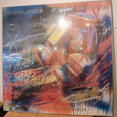 Poster, Michael Heizer, motiv: Geometric, b: 115 h: 115, Michael Heizer 45, 90, 180 flotte farver, er i ramme.