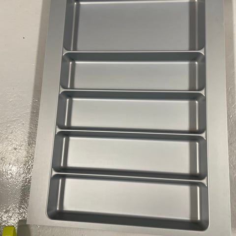IKEA bestikbakke i hvid plast med flere rum til knive, gafler og skeer. Har også et ekstra smalt rum i siden til småting.