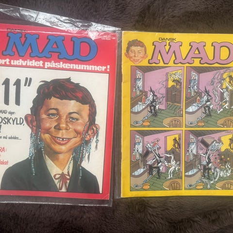 Samling af ældre danske MAD magasiner med forskellige forsider og sjove tegninger. Flere numre med politiske og kendis-parodier, sælges samlet til en MAD-fan. Jeg har i alt 14 magasiner til salg. Kom gerne med et bud hvis du er interesseret, jeg kan sende oversigten over magasinerne, årgang med mere.