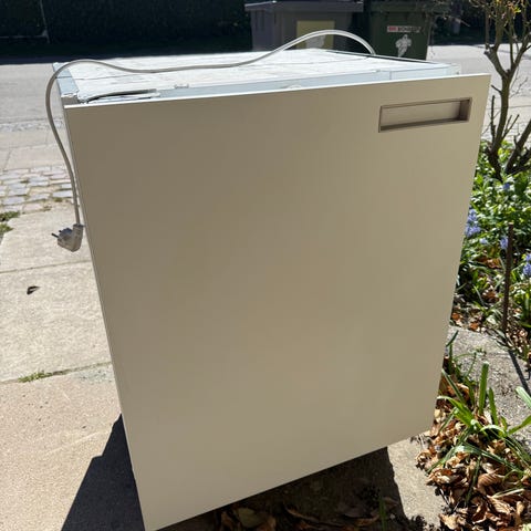 Har pt. en hvid front, men den kan nemt skiftes, så den passer til et specifikt køkken.