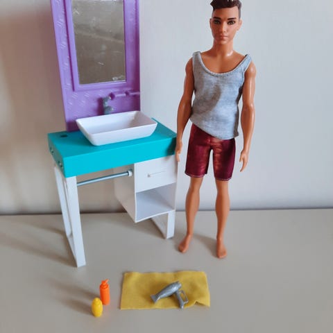 Barbie, Ken dukke badeværelse sæt, Ken dukke inkl tilbehør