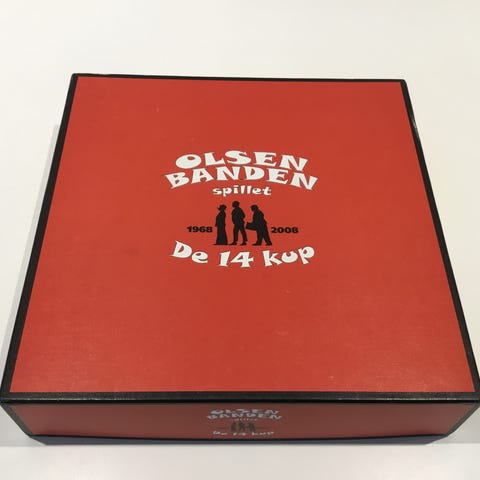 Olsen Banden på spil brætspil med farverigt spillebræt og kort. Terning og brikker følger med, klar til mange timers hygge.