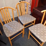 Spisestol i massiv træ med blomstret sæde
