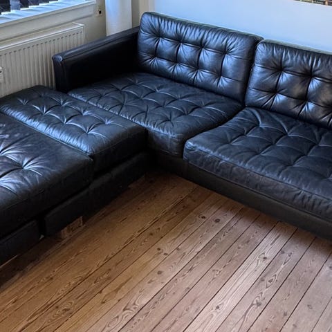 Sofaerne er købt for ca. 12-13 år siden, hvilket betyder, at de er fra en periode, hvor IKEAs læderkvalitet var særdeles kraftig og holdbar. De står i rigtig flot stand, er passet godt på og er stadig faste og fine i siddekomforten.