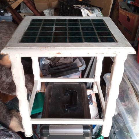 Blomsterbord Natbord, Sidebord, H på bageste metalstang 61 cm. Metalbord med glasplade . Fast pris