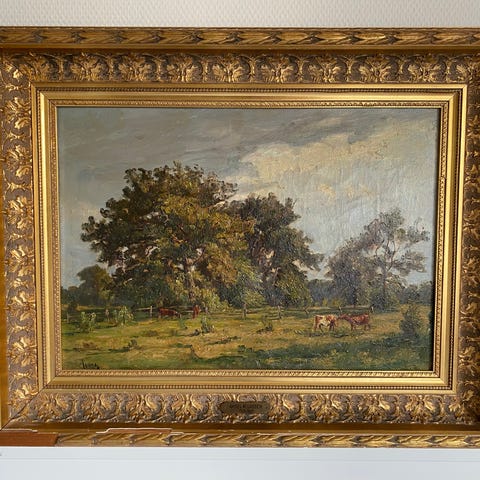 Oliemaleri, Aksel M Lassen, motiv: Landskab, stil: Naturalistisk, b: 33 h: 28, Ældre OlieMaleri af Aksel M Lassen 1869-1946