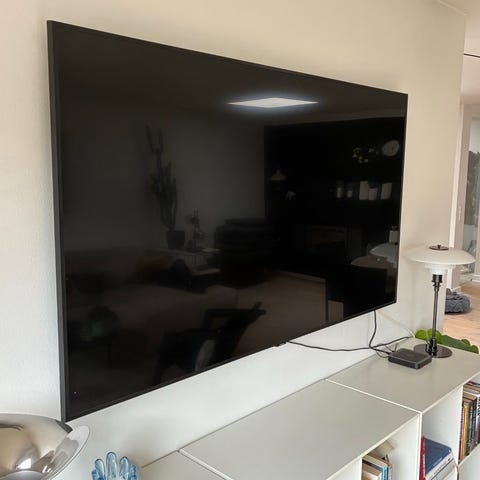 LG 43UH610V 43" fladskærms TV med smart TV funktioner. Har flere HDMI-indgange på bagsiden og står på en sort fod, klar til at blive sat op hos ny ejer. Der er ikke nogen fjernbetjening eller ledning med og den viser blå ellers virker det fint
