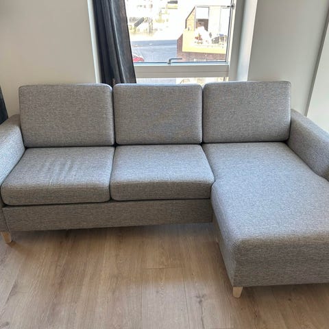 Måler 93cm, 225 cm og chaiselong 150cm. Er 1,5 år gammelt og står så pæn som ny, da jeg har lagt ude og ikke været meget hjemme.