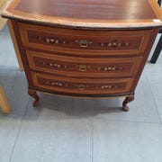 Skab af træ med fire skuffer og bordplade i mørk marmor, detaljeret med messinghåndtag og en stilren, klassisk grønfarvet finish.- Bemærk at mail, chat og beskeder ikke besvares, og varen skal købes på knappen "Gå til varen". Efter reservering af varen har du 10 dage til at afhente den i den butik, varen er på lager i.