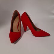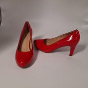 Høje røde stiletter i blankt syntetisk materiale med platform og spids snude. Hælhøjde 13 cm- Bemærk at mail, chat og beskeder ikke besvares, og varen skal købes på knappen "Gå til varen". Efter reservering af varen har du 10 dage til at afhente den i den butik, varen er på lager i.