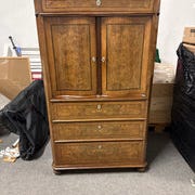Klassisk skrivekommode i mørkt træ med detaljeret snit og messingbeslag. Kommoden har flere skuffer til opbevaring.- Bemærk at mail, chat og beskeder ikke besvares, og varen skal købes på knappen "Gå til varen". Efter reservering af varen har du 10 dage til at afhente den i den butik, varen er på lager i.