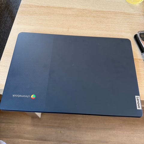 Lenovo Chromebook i farven blå. Oplader medfølger.