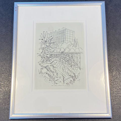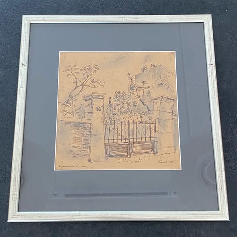 Akvarel, Ebbe Sadolin, b: 21 h: 26, Fineste Ebbe Sadolin original tegning. “Villa Borghese, Rom”. Pen og akvarel. Signeret