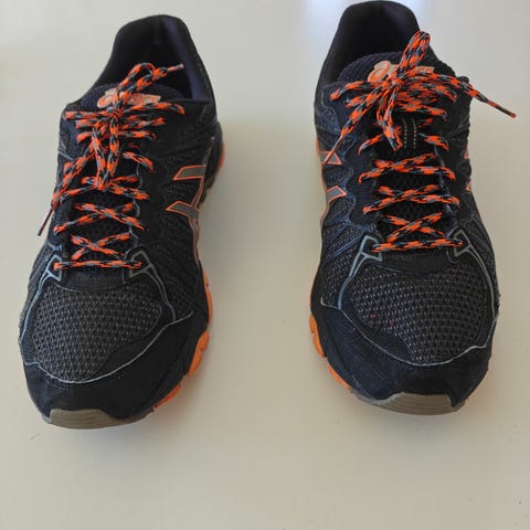 Asics padelsko i str 45 i hvid med sorte detaljer. Klassisk snørelukning og åndbart mesh på overdelen.