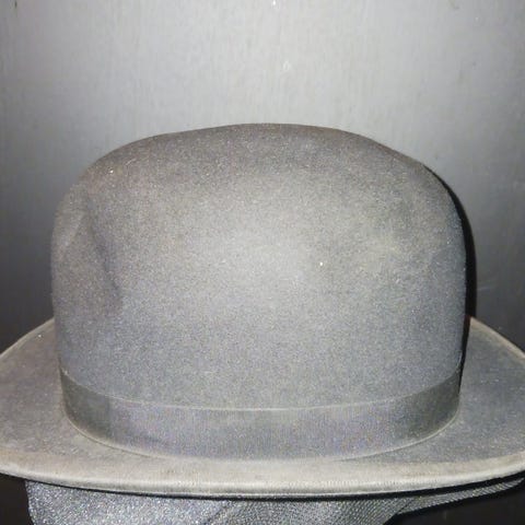 Hat, bowlerhat, str. 7-55, sort, fiber, Næsten som ny, Bowlerhat- pæn som ny Mærke: The standard Hat Import Stockport Randers str. 7 Pul lgd: 19,8cm BR: 16cm Lgd m/kant 30cm Br m/kant: 24cm Ø: 55cm. Sort med silkefoer og skind svede rem. Kan sendes