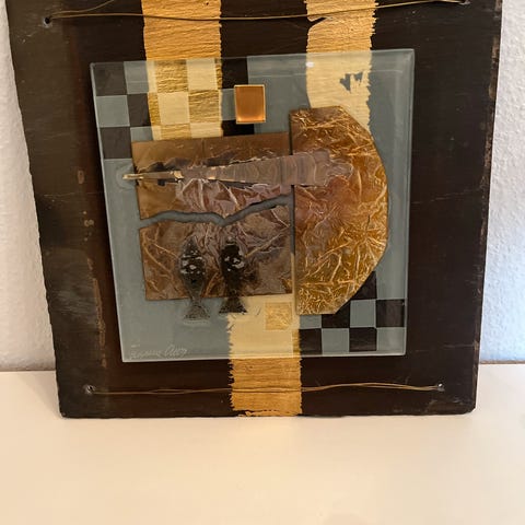 Kunst, glas/bly, 20 år gl., smukt glaskunst, udført af Susanne Aaes - hverdagskorset, højde 26 cm., bredde 9 cm..Fast pris.