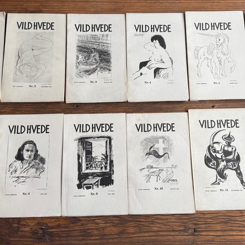 Diverse numre af litteratur tidsskriftet Vild hvede (det der i dag hedder Hvedekorn). Indeholder lyrik, essays, noveller mv. fra mange af tidens kendte forfattere og kunstnere - hvor af mange også havde deres debut her. Prisen er pr. nummer.