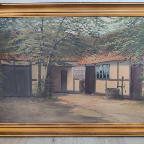 Oliemaleri, E. Dahl, motiv: Blomster/Have