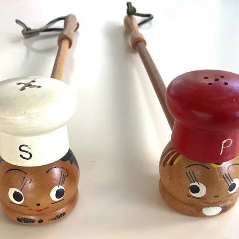 Andre samleobjekter, Salut og peberkar, 2 flotte salt og peberkar med træskeer til