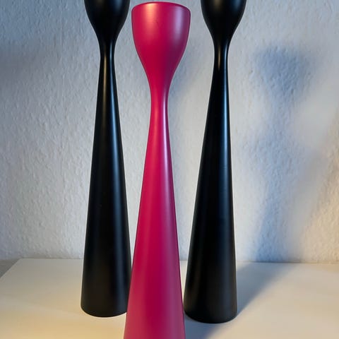 Lysestager, Rolf lysestager, 2 høje, flotte trælysestager, str. M, h. 28 cm i farverne sort og hvid. Stagerne er designet af Maria Dahlberg og produceret af Freemover. Stagerne er kun brugt en enkelt gang og er i fin stand. Sælges samlet.