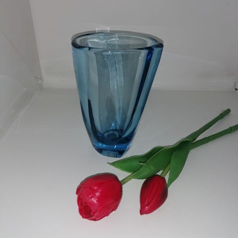 Sklo, Rudolfova, Fin lille vase i lilla. Designet i 1957 af Václav Hanus. I fin stand med enkelte ridser i kanten.