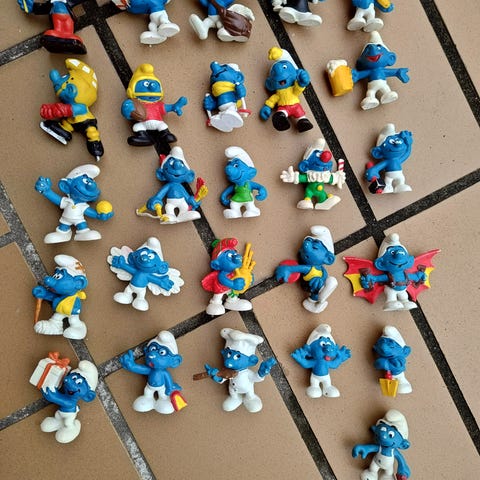 [Læs tekst] Små figurer m. hus (bl.a. Smølfer)