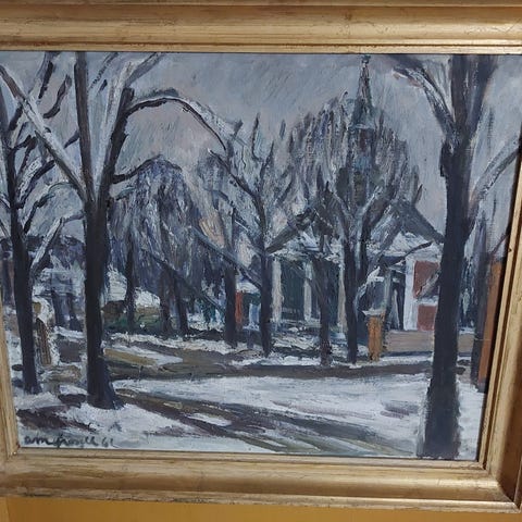 Unikum af Emil Petersen ( eget tryk), kirkelandskab. Indrammet i en rigtig fin sølvramme med glas.