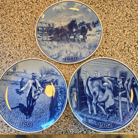 Platte 1905 Horsens landbrugs udstilling, Kgl, 1905, I meget flot stand, helt uden skår, ridser og fejl. Af Arnold Krog fremstillet på Kgl I 1. sortering. I anledning af udstilling for industri og landbrug. I ukendt antal. Kr 350.