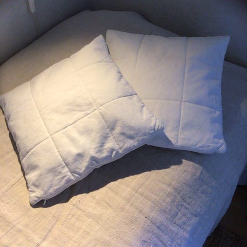 2 Splash Cushions 50x50 cm. Betræk fremstillet i 100% bomuld i sort og hvide farver. Puderne måler 50x50 cm og er velegnet som brugskunst i hjemmet. Inderpuder med fyld af andefjer og dun medfølger. Prisen er for begge puder, og sælger betaler fragten.