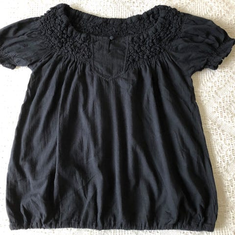 Den lilla tunika bluse er ikke brugt men har fået en svag falme af at ligge for længe. Den grønne ser er brugt, ser lidt forvasket ud, men fin derfor prisen.