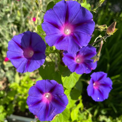 pragtsnerle frø, lilla, etårig sommerblomst, slyngplante der kan blive 2-3 meter høj , placeres i fuld sol, vandes og gødes jævnligt