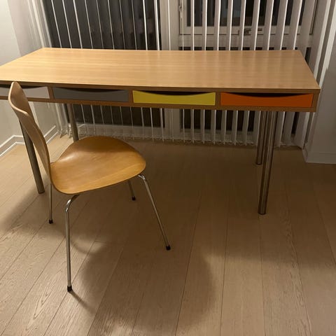 Skrivebord, Peter Boy s2, b: 95 d: 200 h: 74, Nypris ca 20.000 kr. God stand incl. 2 tillægsplader som måler 50 x 95 cm