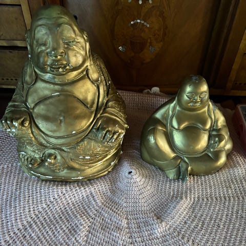 To ældre figurer af Buddha , Messing og alabast.