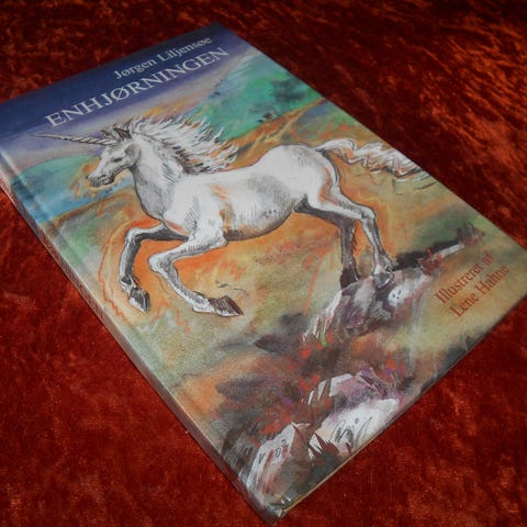 Enhjørninger! Enhjørninger!, Geraldine McCaughrean, Sophie Windham, Udgivet af Klematis i 1997 i hardcover og i farve.