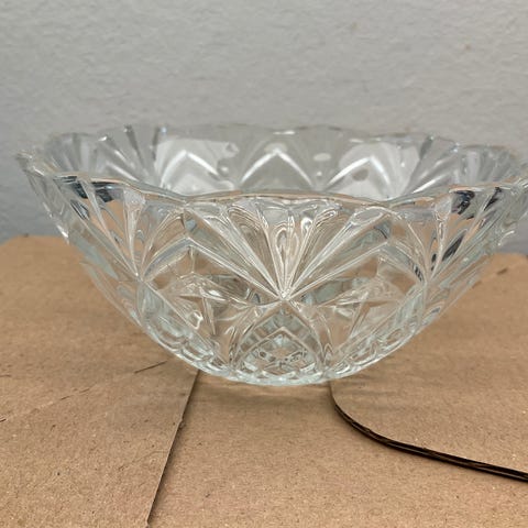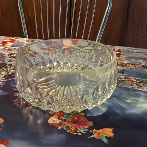 Stor skål i krystalglas, vintage, Der er her tale om en stor flot vintage skål i klart krystalglas.