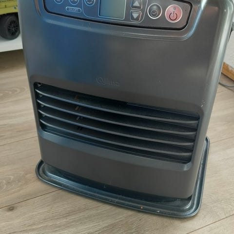 Petroleumsovn, Toyokuni, rund/cirkulær glasfibervæge med 95 mm i diameter og glødetænder til tænding til Toyokuni katalysator ovn til petroleum. Ovnen er af ældre dato.